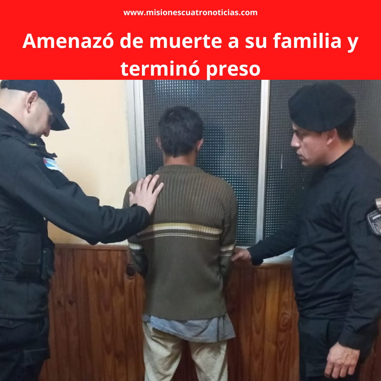 Los agentes de la División Comando Radioeléctrico de esa localidad fueron alertados a raíz de un llamado telefónico, debido a que en el domicilio antes mencionado un hombre se encontraba agrediendo a su familia y según la denuncia los había amenazado de muerte.