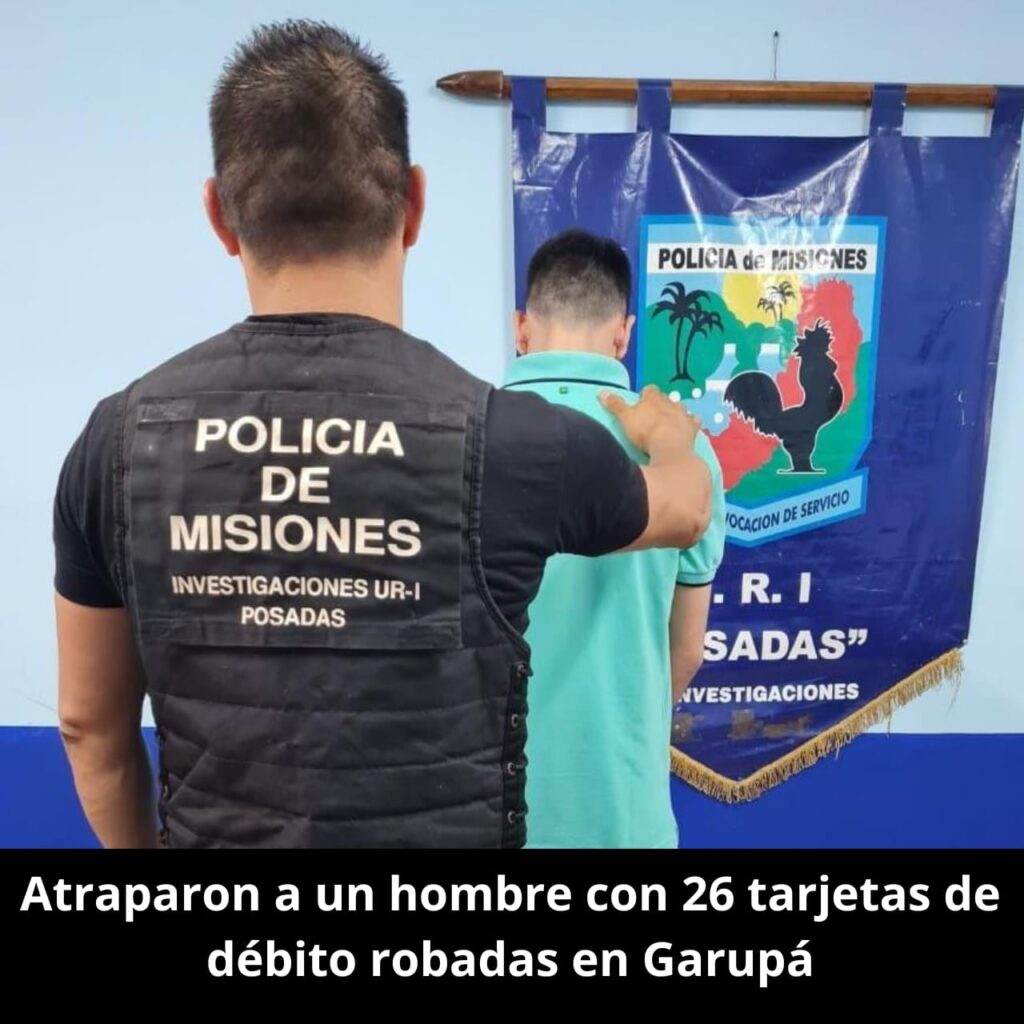 Emanuel C. de 28 años, tenía 26 tarjetas de débito de diferentes entidades bancarias con nombre de distintas personas, fue detenido el jueves alrededor de las 17 horas sobre la avenida De Las Misiones y la calle G. Furlong del barrio Fátima de Garupá.