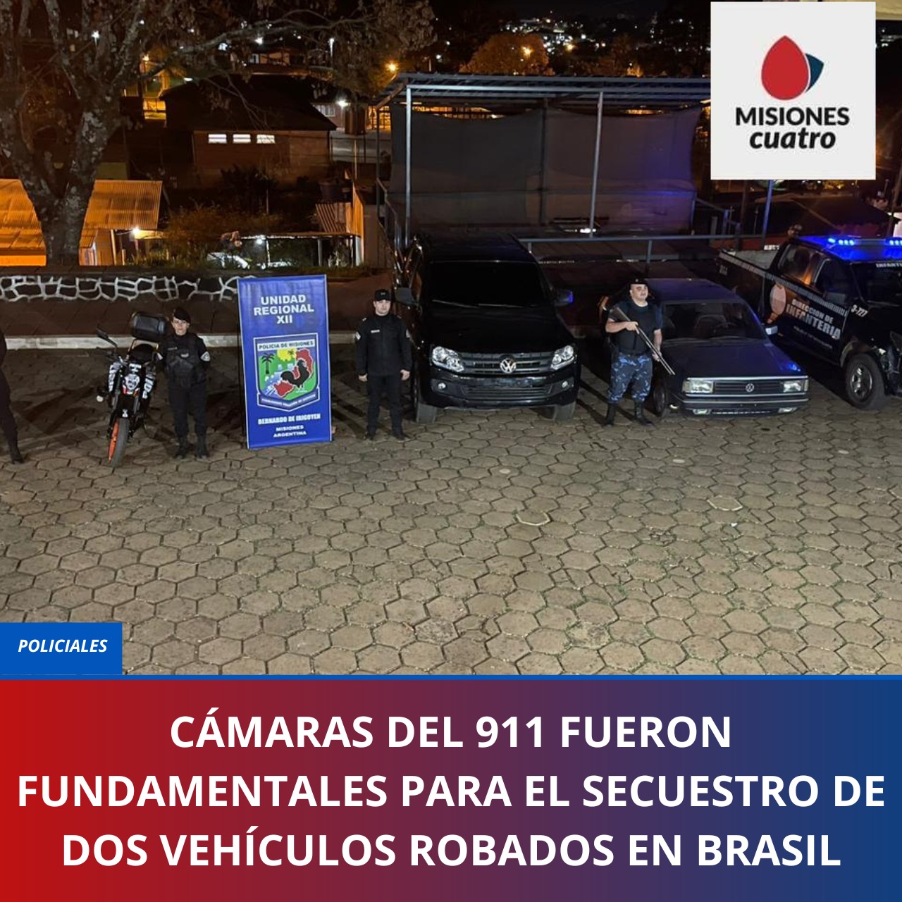 La Policía de Misiones con su sistema integrado de videovigalancia logró ubicar y secuestrar en los últimos días, tres vehículos robados en Brasil que ingresaron en forma clandestina a la provincia en la ciudad de Bernardo de Irigoyen, además detuvieron a uno de los implicados en ese tipo de ilícitos.