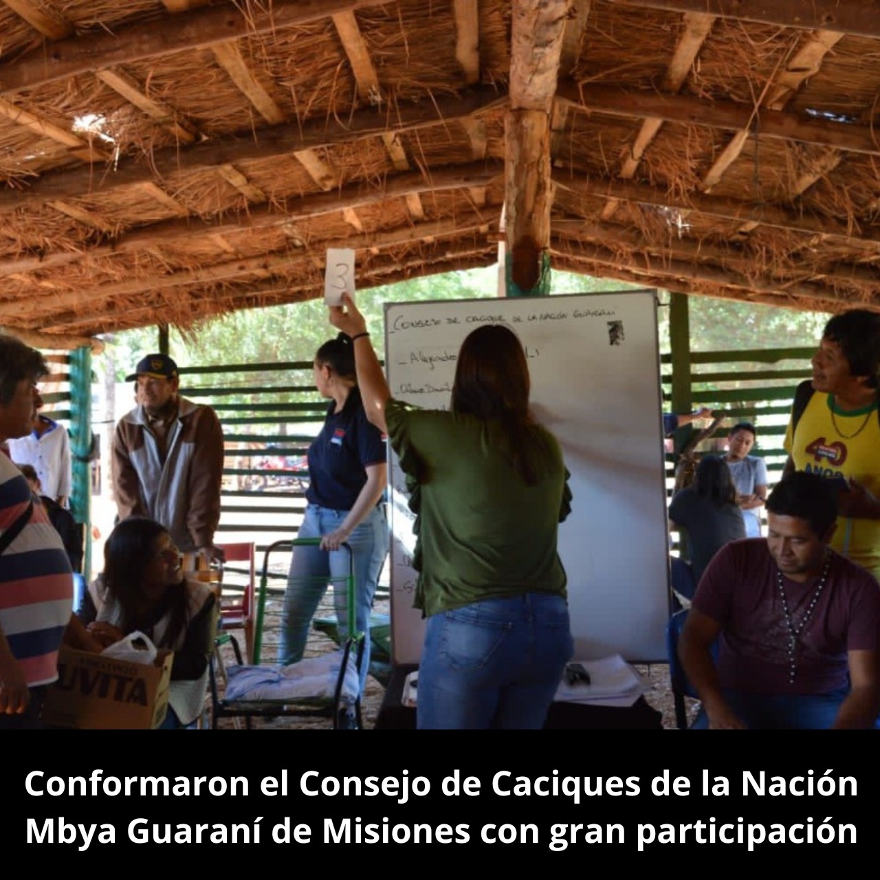 Los distintos Caciques, de forma democrática y consensuada, a partir de las propuestas expresadas por los presentes, eligieron a través del voto secreto a Alejandro Benítez de la Comunidad Pindo Poty de El Soberbio como Presidente del Consejo de Caciques. Del mismo modo, fue electa Ruperta Morinigo como 2da autoridad del espacio, dejando conformado así el Consejo de Caciques la Nación Mbya Guaraní de la Provincia de Misiones.