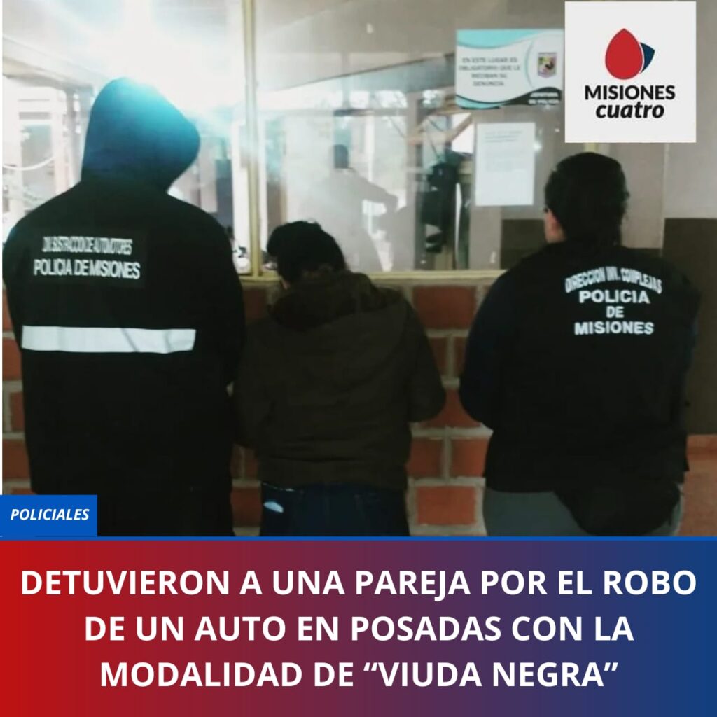 Los trabajos investigativos realizados por la Dirección de Investigaciones Complejas, dio como resultado en la tarde del martes la detección de los presuntos involucrados, quienes utilizando la modalidad delictiva conocida como “Viuda Negra”, sustrajeron un Peugeot Partner a un hombre de 65 años, residente del Barrio A-4 de Posadas, quien relató que fue engañado por la sospechosa, la cual en un momento de distracción tomó las llaves de su vehículo y se marchó con el rodado, el cual contenía dinero y documentaciones en su interior.