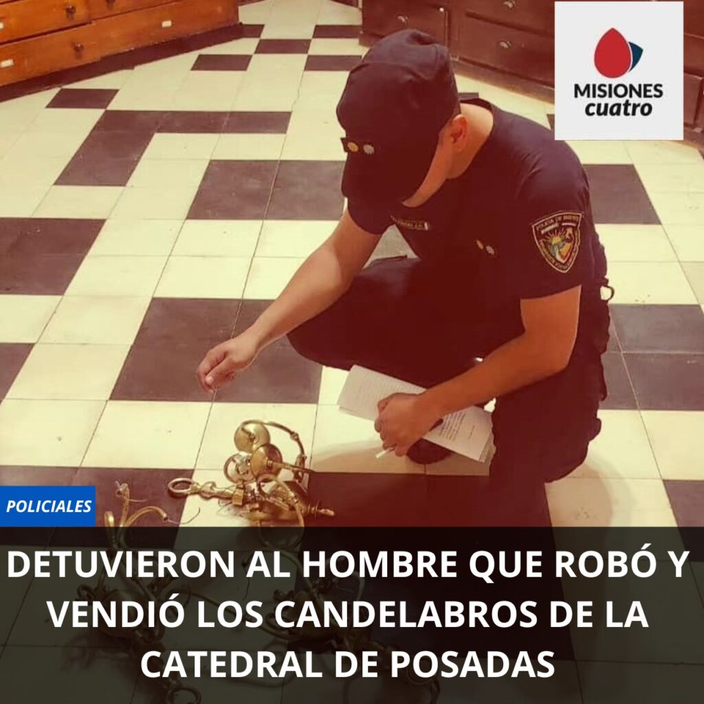 En horas de este mediodía, la Policía logró detener a Oscar V. alias “Elegante” de 21 años, quien el sábado a la mañana había robado tres candelabros de la catedral del Centro de Posadas, acto que quedó captado por las cámaras del lugar.