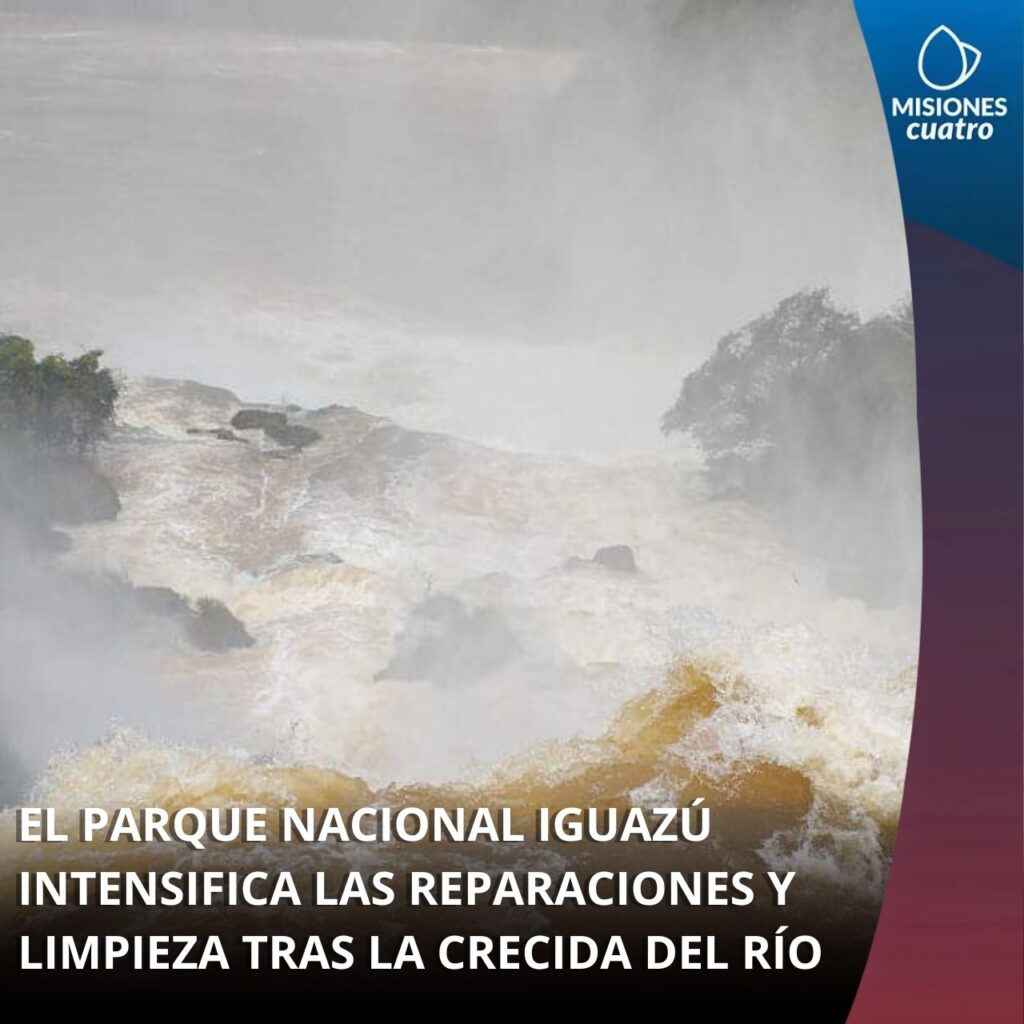 El Parque Nacional Iguazú avanza con obras de reparación de pasarelas afectadas por el aumento del caudal del río homónimo, así como también con las tareas de limpieza, mientras se espera el descenso de las aguas que permitan la reapertura al público de las Cataratas.