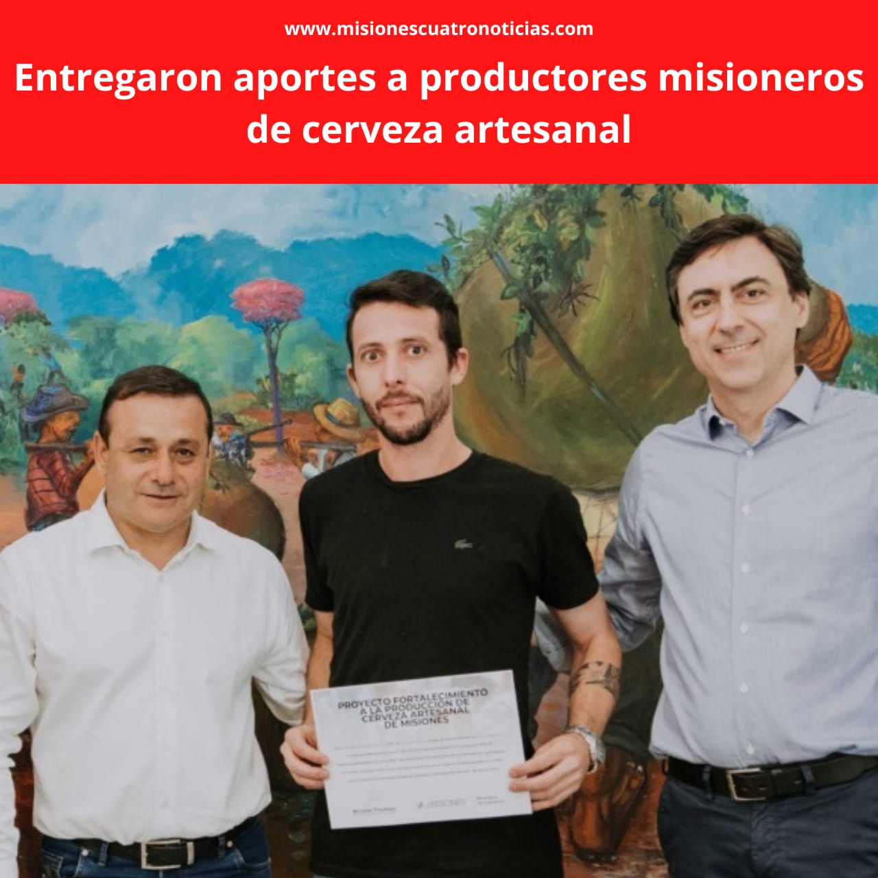 Este martes, en la Sala de Situación, el gobernador Oscar Herrera Ahuad entregó certificados de Aportes No Reembolsables a 20 beneficiarios en el marco del programa “Fortalecimiento de la Producción de cerveza artesanal misionera”, concretando así una nueva asistencia a al sector destinado a la compra de equipamiento e infraestructura, como carritos cerveceros full tracks, que generan mayor valor agregado a la cerveza artesanal, permitiendo que el productor se expanda y gane nuevos mercados.