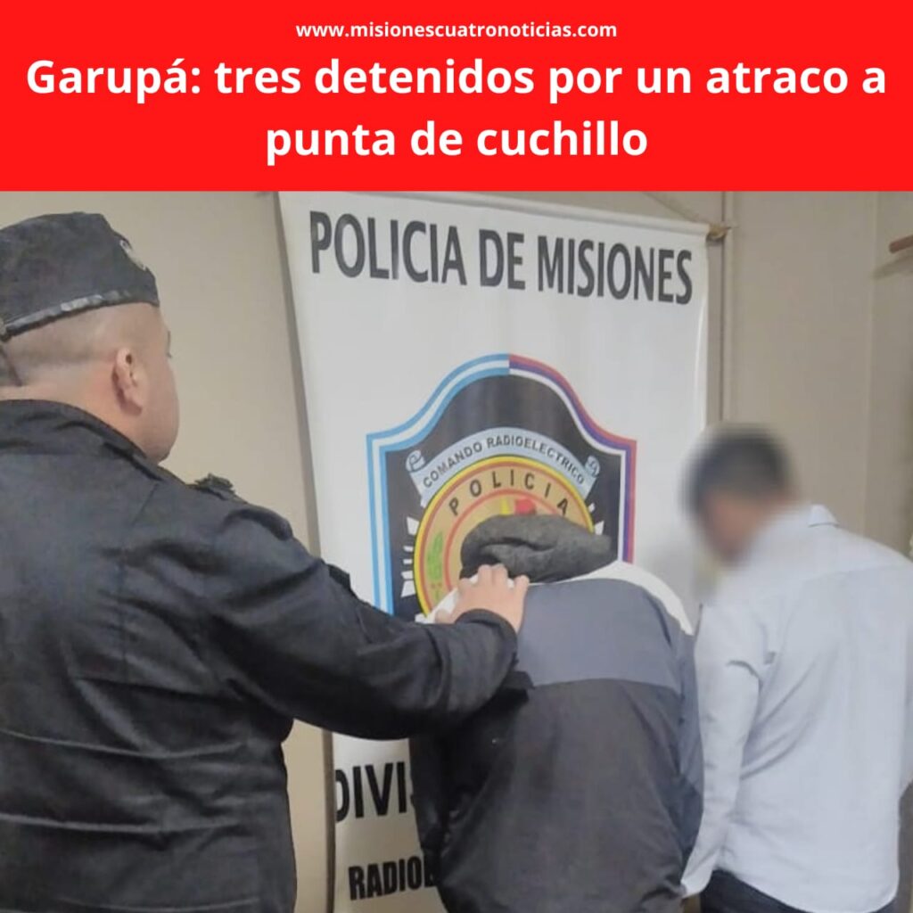 Tres hombres de 25, 26 y de 44 años fueron detenidos en la madrugada del sábado en inmediaciones a la colectora Tita Merello y la calle Santo Pipó de Garupá, por cometer un atraco callejero a punta de cuchillo.