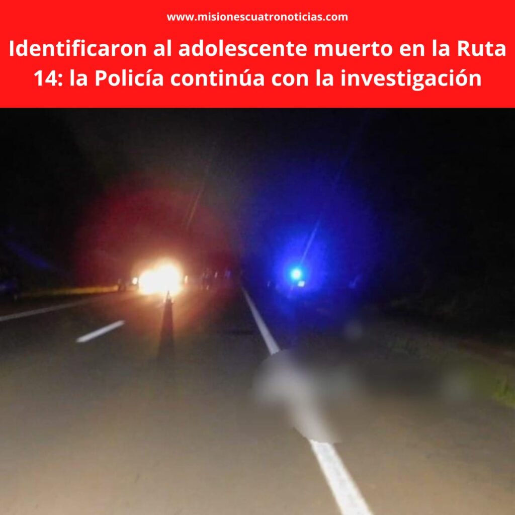 Se trata de Agustín Alex Dos Santos de 17 años, quien el último domingo fue encontrado sin vida, tendido sobre la banquina de la Ruta Nacional 14, a la altura del kilómetro 992 de San Vicente, presentando una herida contusa en la frente. La Policía continúa con las pericias para establecer la causa de su deceso.