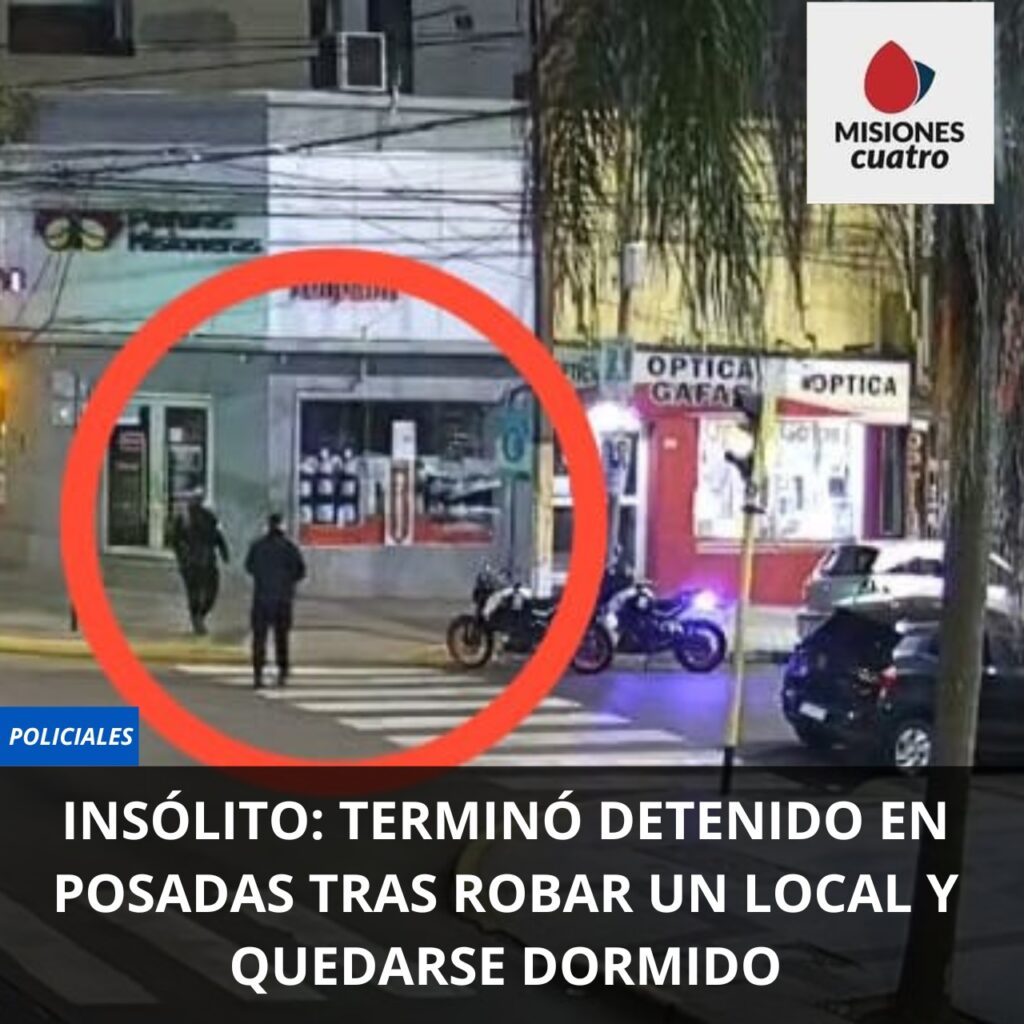 En un particular suceso ocurrido el domingo madrugada en la intersección de las calles Bolívar y Junín de Posadas, un hombre que había ingresado a un local para robar y no lograba salir, se resignó al ver que la Policía lo tenía rodeado y se quedó dormido hasta el momento de su captura.