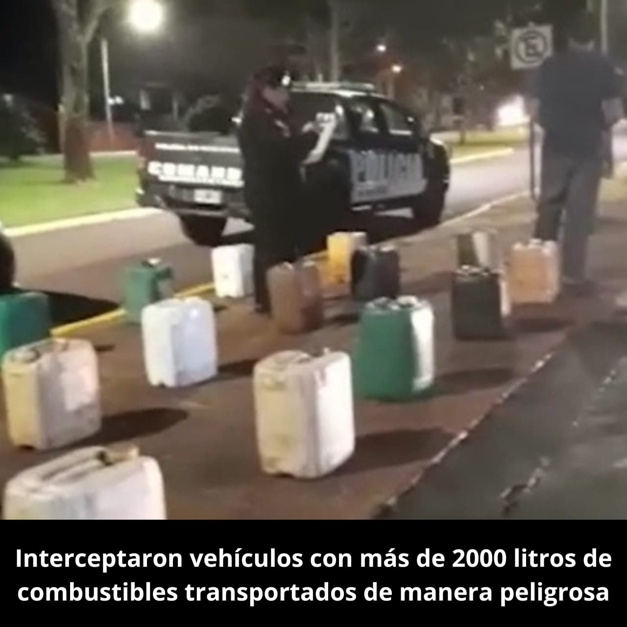 En cuatro procedimientos realizados esta semana en Puerto Rico y en Capioví, la Policía secuestró un total de 2025 litros de combustible que eran transportados de manera irregular y peligrosa, representando un riesgo para los conductores, terceros y el medioambiente, con altas probabilidades de ocasionar incendios.