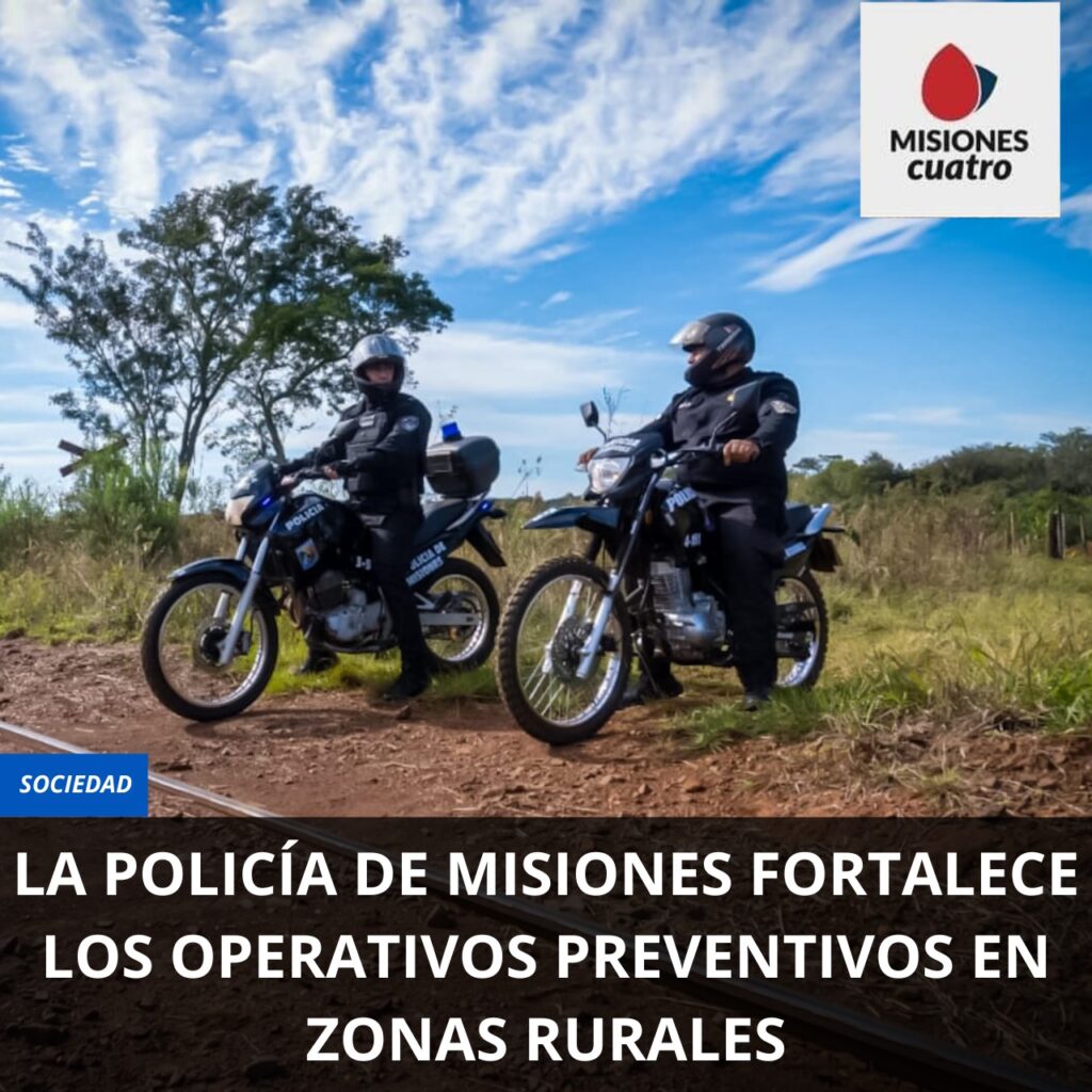 Con el objetivo de garantizar la seguridad en las áreas rurales de la provincia, la Policía de Misiones continúa implementando operativos preventivos en distintos puntos agrícolas. Más de setenta patrullas rotativas se desplazan diariamente por estas zonas, sumándose a las cinco Divisiones de Delitos Rurales que ya tienen un área jurisdiccional de trabajo establecido por la Jefatura de Policía.