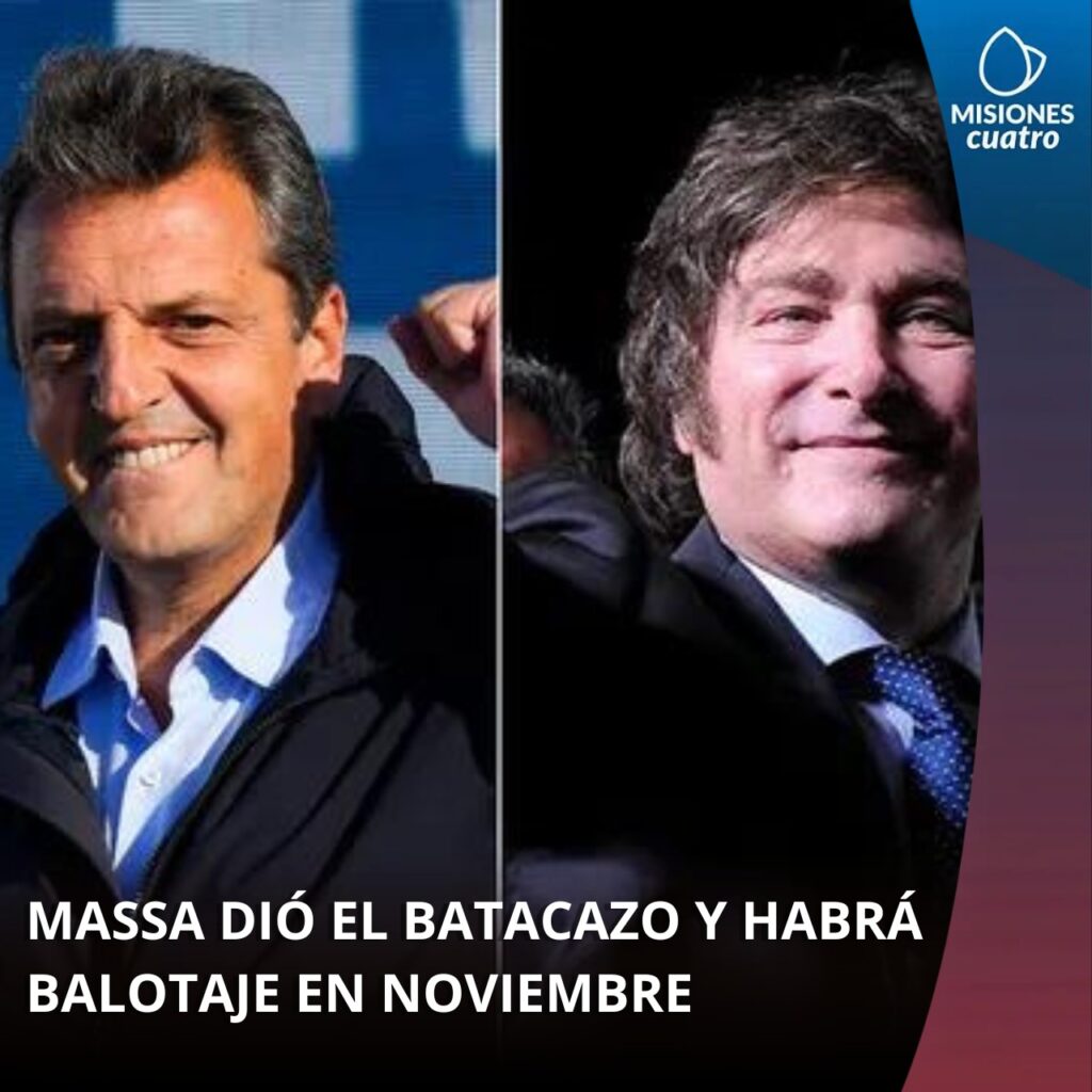 Con estos porcentajes, la elección de un nuevo Gobierno quedó atada a lo que suceda en el balotaje -previsto para el 19 de noviembre- entre Massa y Milei, luego de que quedaran fuera de competencia los otros tres postulantes a la Presidencia: Patricia Bullrich, de Juntos por el Cambio (JxC); Juan Schiaretti, de Hacemos por Nuestro País (HxNP) y Myriam Bregman, del Frente de Izquierda y los Trabajadores (FIT).