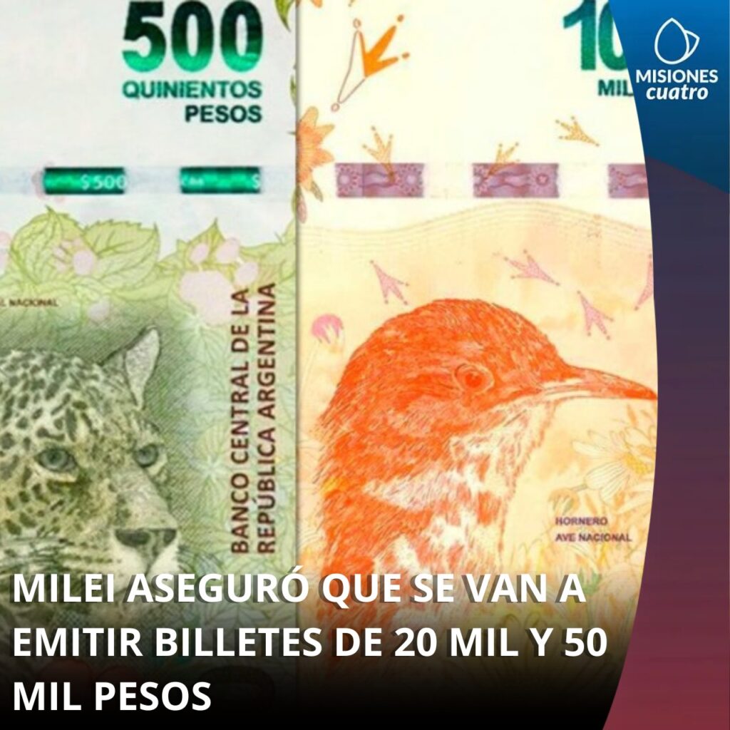 El presidente Javier Milei confirmó este martes que se van a emitir billetes de 20.000 pesos y 50.000 pesos “porque dificulta las transacciones”, al tiempo que anticipó que habrá un nuevo impuesto llamado “Tasa Kicillof”, para poder pagar el juicio por la estatización de YPF.
