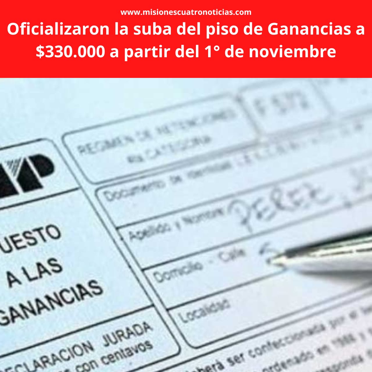 La suba del mínimo no imponible del Impuesto a las Ganancias a $330.000 a partir del 1 de noviembre próximo quedó oficializada este viernes con su publicación en el Boletín Oficial.