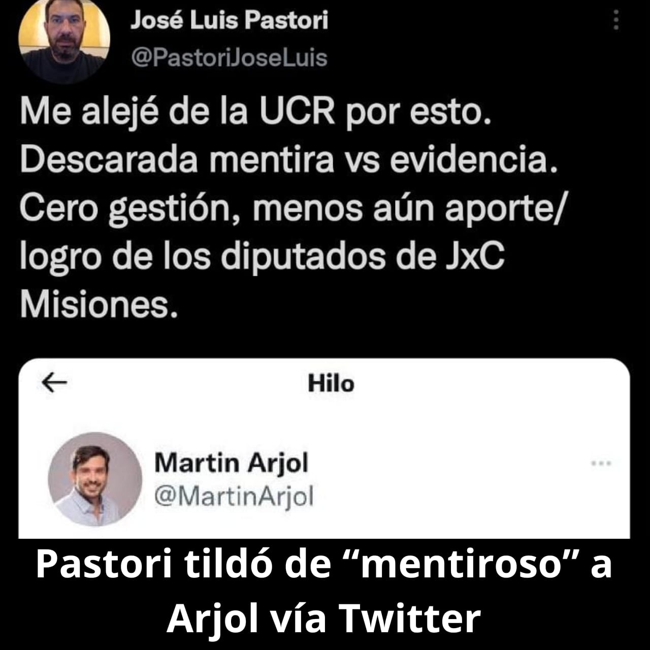 “Logramos en el Presupuesto 2023 la incorporación de obras para Misiones por más de 5.000 millones que solicitamos semanas atrás, con una visión para el desarrollo de nuestra provincia”, había tuiteado Arjol. A lo que Pastori respondió: “Me alejé de la UCR por esto. Descarada mentira vs evidencia. Cero gestión, menos aún aporte/logro de los diputados de JxC Misiones”, sentenció.