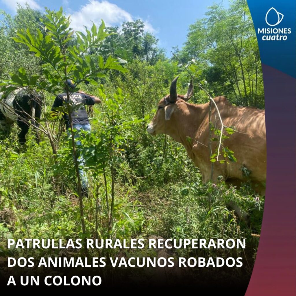 Mediante un rápido accionar policial y tareas de rastrillajes en zona rural, la Policía de la localidad de 25 de Mayo recuperó esta tarde dos animales vacunos que minutos antes habían sido robados a un colono, además detuvieron al implicado en el hecho.