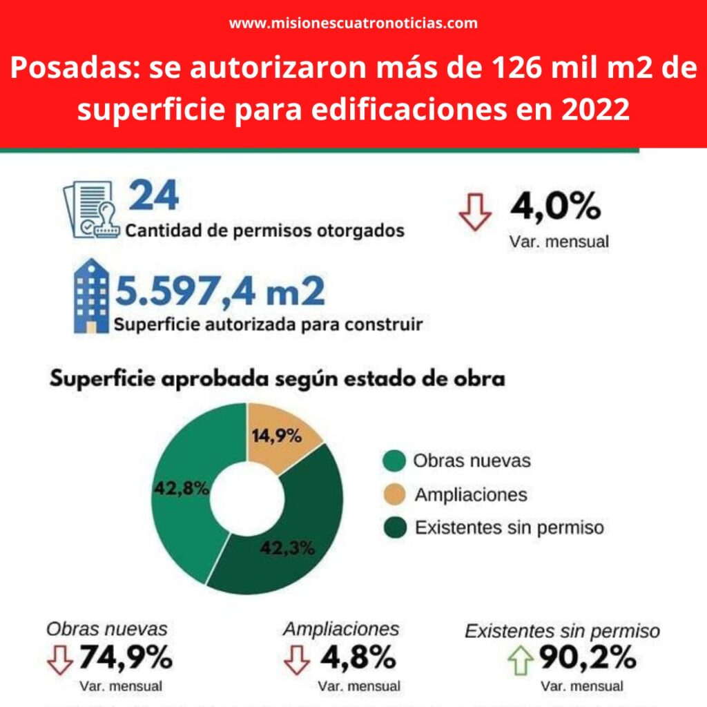 La Municipalidad de Posadas ha otorgado 338 permisos de edificación en este 2022, lo que implica 126.514,4 m2 de superficie autorizada para distintos tipos de construcción. En el mes de septiembre, del año en curso, la ciudad de Posadas ha entregado 24 certificados de permisos, lo que representa 5.597,4 m2 de superficie total autorizada para construir en ese mes, según informó la Oficina de Gestión de Datos.
