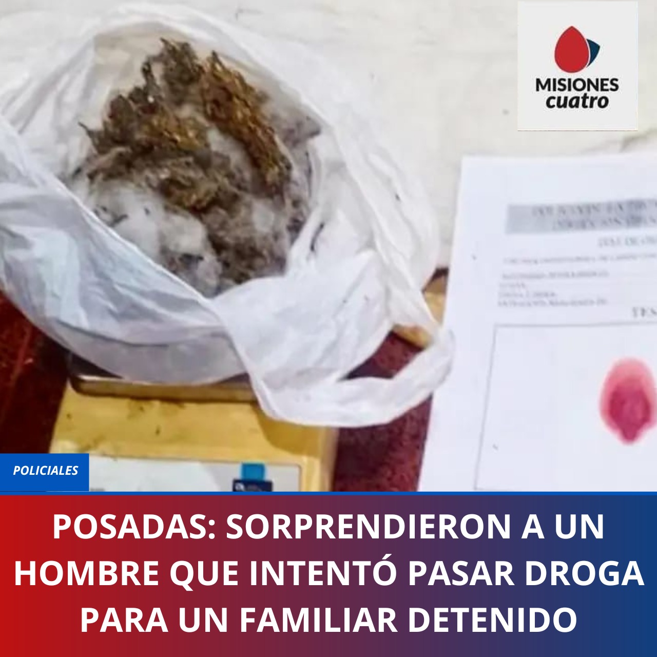 Por su parte, la Justicia Federal de Posadas ordenó que se incaute la sustancia, se le tome declaración al hombre implicado y se le otorgue la libertad supeditada, mientras se continúa con la investigación del caso.