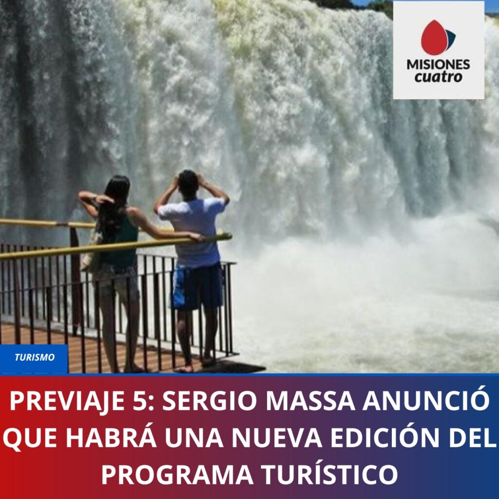 El ministro de Economía y precandidato presidencial, Sergio Massa, hizo el anuncio durante una entrevista televisiva en C5N. Habló sobre la nueva edición del PreViaje y anticipó que el anuncio oficial se realizará después de las elecciones primarias del 13 de agosto. Se estima que se podrán comprar pasajes, alojamiento y paquetes dentro del país para los meses de septiembre y octubre, en temporada baja.
