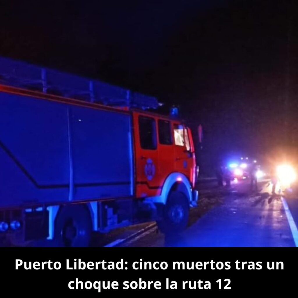 Cinco personas fallecieron murieron este domingo al producirse un siniestro vial sobre la ruta nacional 12 en Puerto Libertad. Uno de los vehículos terminó incinerado.
