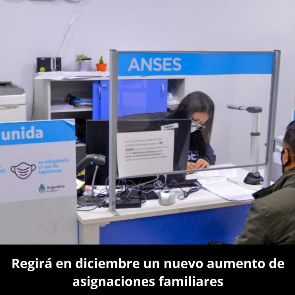La Administración Nacional de la Seguridad Social (ANSES) anunció los nuevos valores de las asignaciones familiares que regirán a partir de diciembre, con un aumento del 15,62%.