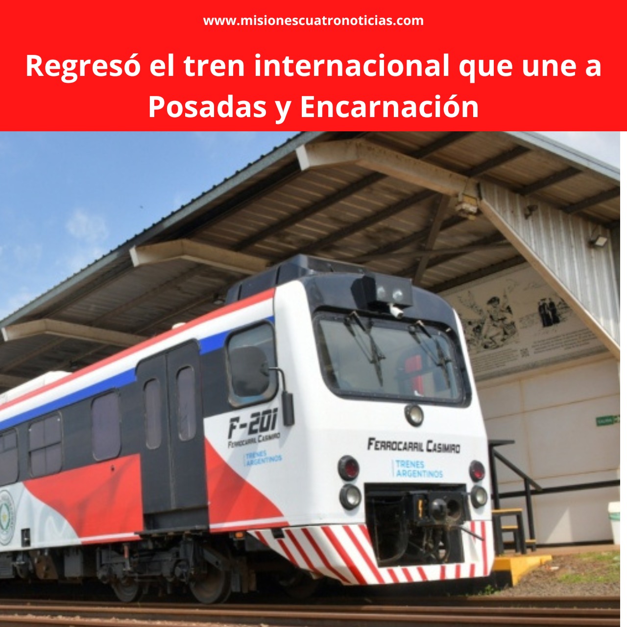 El tren internacional de pasajeros que une la ciudad misionera de Posadas con la de Encarnación, en Paraguay, volvió a funcionar tras dos años y medio de paralización como consecuencia de la pandemia de coronavirus, convirtiéndose de esta forma en el único servicio ferroviario internacional en funcionar en el país, informaron fuentes oficiales.