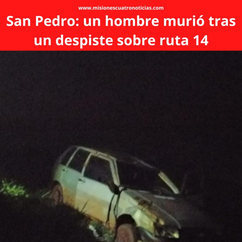 El siniestro fatal se registró a las 01:20 de este martes en San Pedro, a la altura del kilómetro 1051 de la ruta nacional Nro. 14, en donde por razones que se tratan de establecer, un hombre de 47 años, identificado como Ramón Káiser, quien conducía un Fiat Uno, falleció tras perder el control de su vehículo y despistar hacia la banquina.
