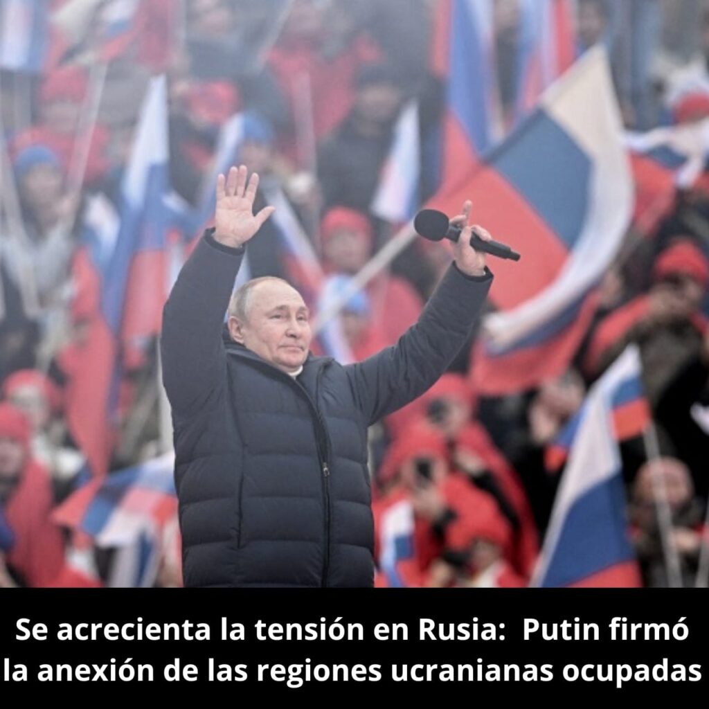 El presidente de Rusia, Vladimir Putin, firmó la anexión a Rusia de cuatro regiones ucranianas ocupadas por su Ejército y afirmó que sus habitantes “serán nuestros ciudadanos para siempre”.