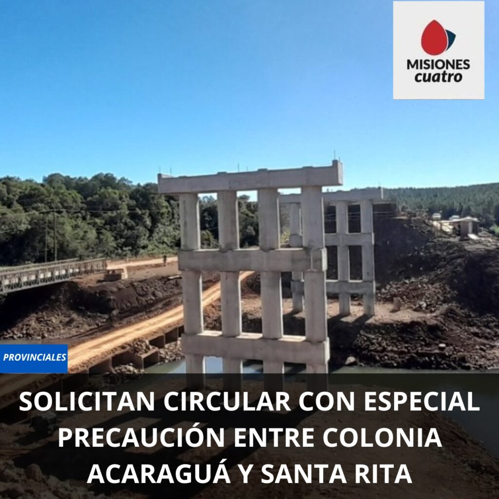 Desde la Dirección Provincial de Vialidad se informó que desde este lunes 12 de junio se trasladarán las vigas postesadas que se utilizarán en la construcción del puente sobre el arroyo Pindaytí. Desde la entidad solicitaron a los conductores tener especial cuidado al circular desde Colonia Acaraguá hasta Santa Rita por las Rutas Provinciales Nº 103 y N° 2, siempre en el municipio de Alba Posse, donde está emplazada la obra.