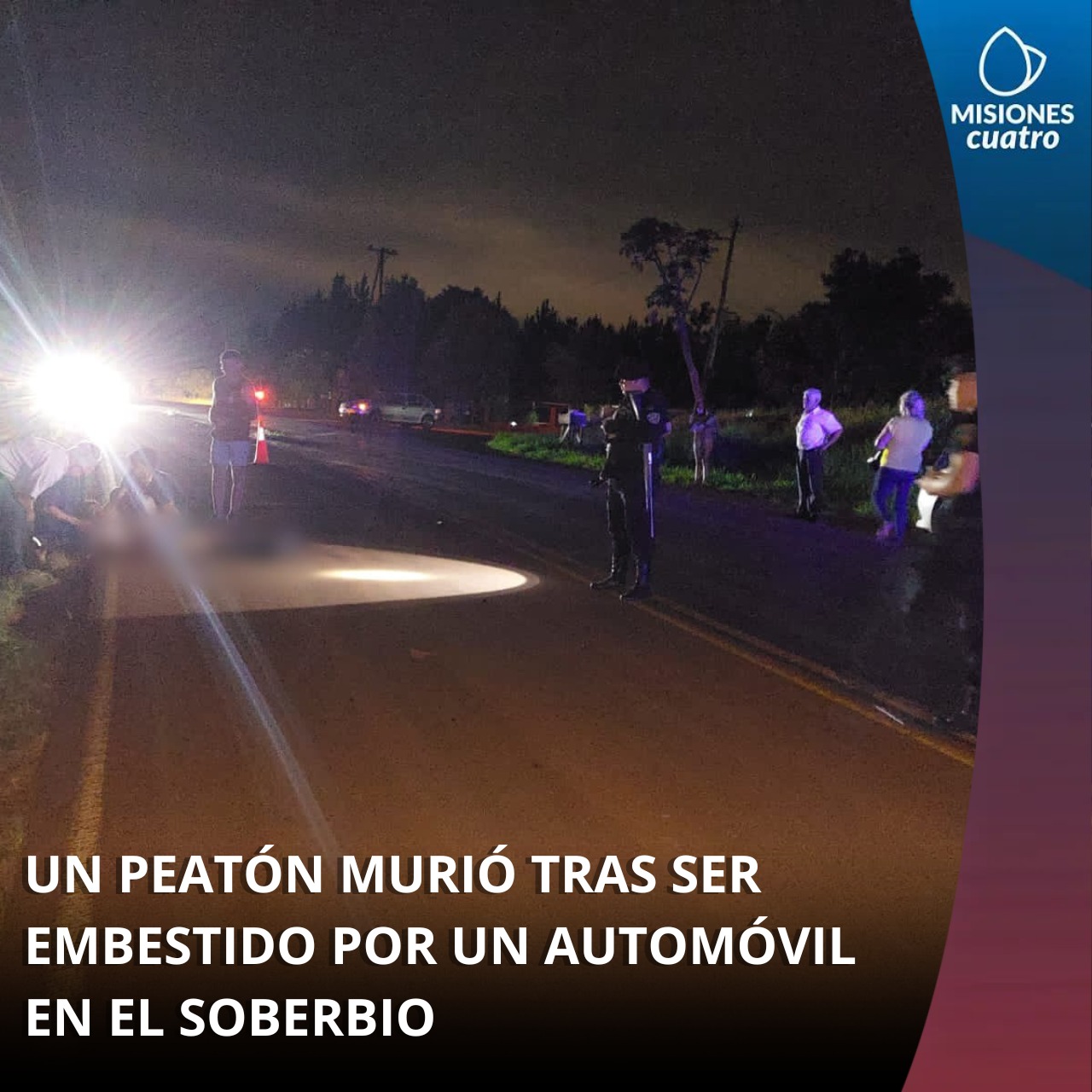 El domingo por la noche, un peatón identificado como Carlos De Oliveira de 35 años, perdió la vida en el Hospital de San Vicente, donde fue llevado tras ser embestido por un Chevrolet Cobalt conducido por un hombre de 29 años, en el kilómetro 4 de la ruta provincial 2 de El Soberbio.