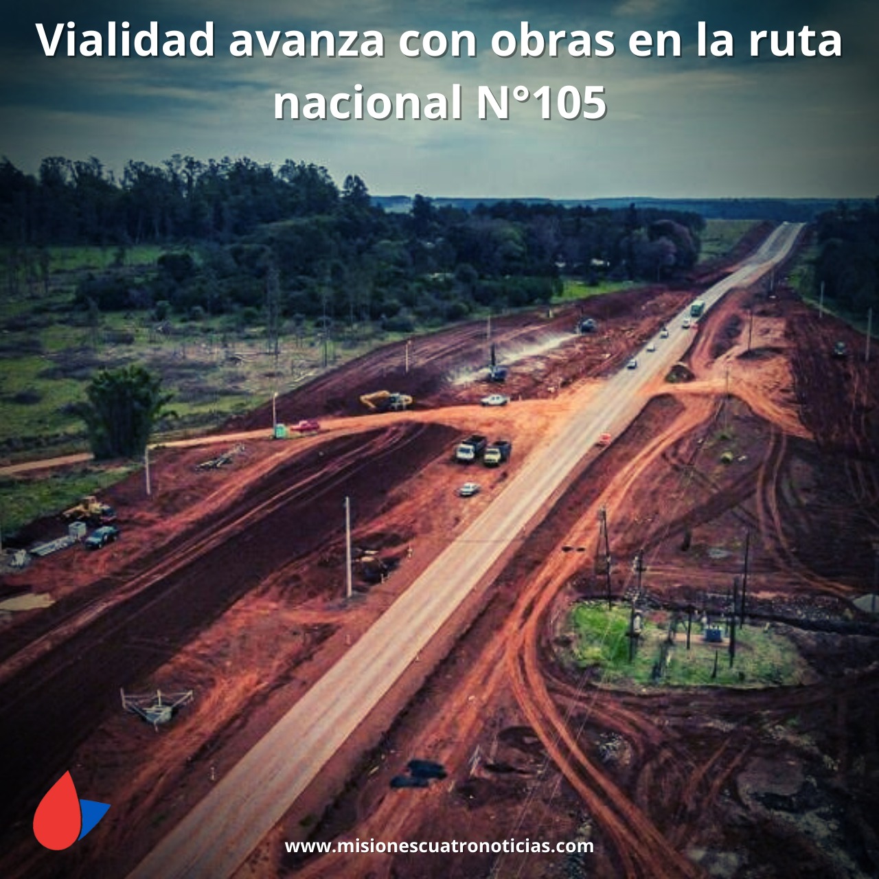 La Dirección Provincial de Vialidad (DPV) trabaja en un nuevo tramo de la ruta nacional N° 105 en la obra de extensión de la autovía que se ejecuta desde el puente sobre el arroyo Pindapoy Chico hasta la rotonda de la intersección con la ruta nacional N° 14.