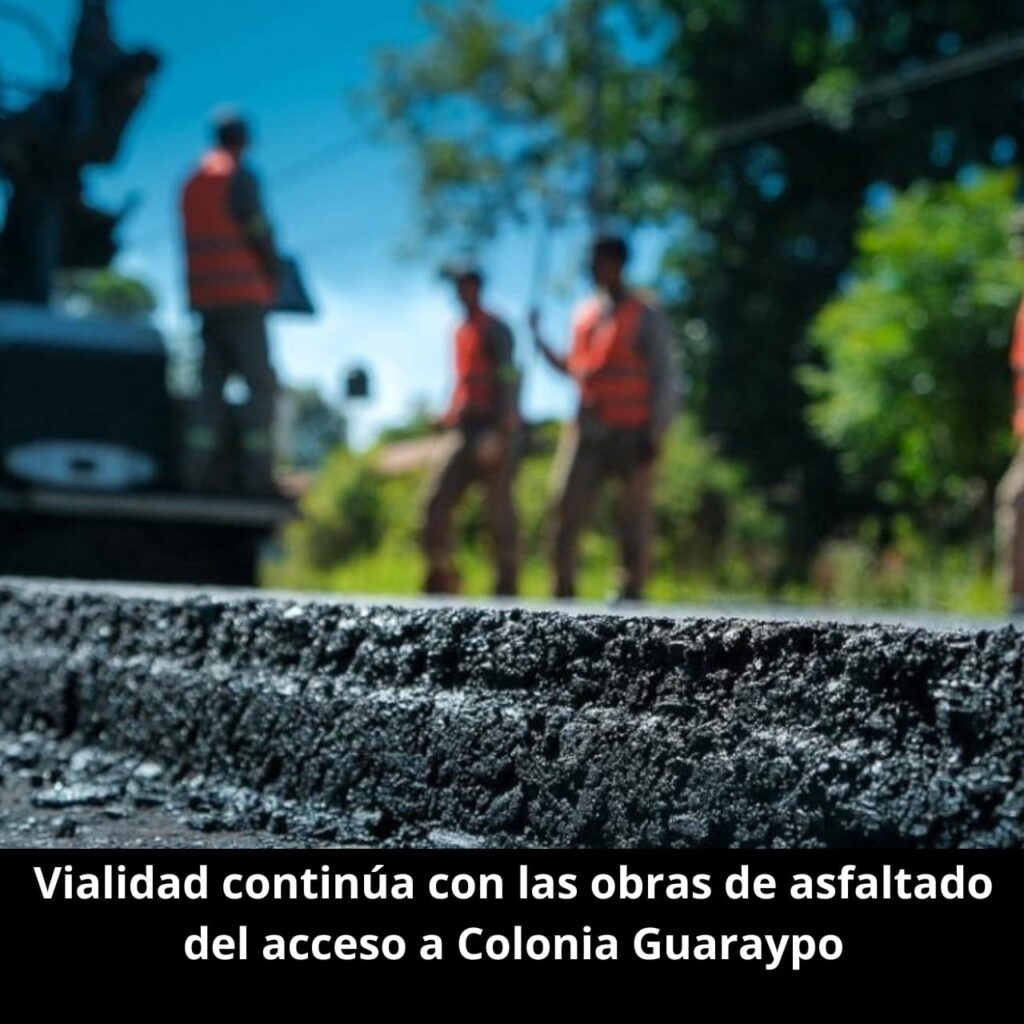 La Dirección Provincial de Vialidad (DPV) está ejecutando la pavimentación del acceso a Colonia Guaraypo, en el Municipio de Montecarlo. El camino consta de 11 kilómetros en los cuales ya se ejecutó la obra básica y el saneamiento.